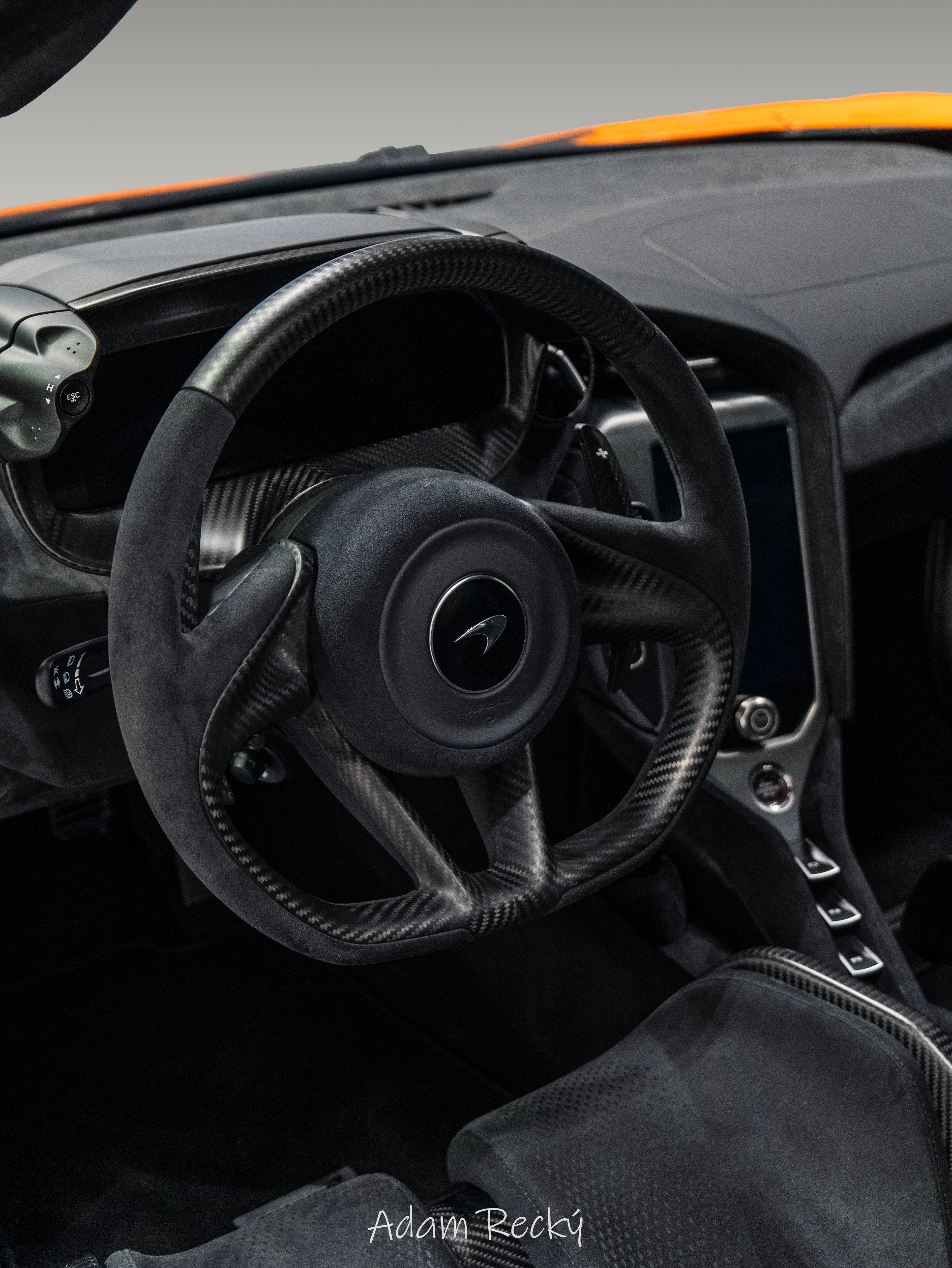 This McLaren 750S Coupe in Ventura Orange instantly grabs attention with its bold and aggressive look. Power comes from a 4.0 litre twin turbo V8 producing 750 hp and 800 Nm of torque sent to the rear wheels through a lightning fast dual clutch transmission. This example is equipped with carbon and Alcantara bucket seats sourced from the McLaren Senna, giving the interior a true motorsport feel. The Carbon Pack, black details, matte black wheels, and stealth matte exhaust perfectly match the car’s focused and purposeful character.